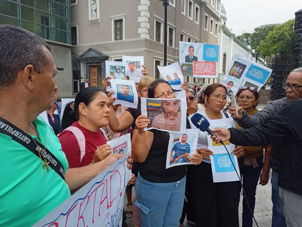 Hoy, en la afueras de la sede administrativa de la Asamblea Nacional, unas 30 familiares de personas excluidas de la amnistía alzaron su voz para exigir justicia y solicitar una audiencia con la Comisión de Seguimiento de la Ley de Amnistía. Participaron madres y parejas de detenidos post electorales del estado Falcón que aún no han sido liberados y, también, de jóvenes de las frontera, acusados sin pruebas, de terrorismo, en el contexto de lo que el gobierno llamó, en 2021 y 2022, los TANCOL (acrónimo de “terroristas, asesinos, narcotraficantes, colombianos”).